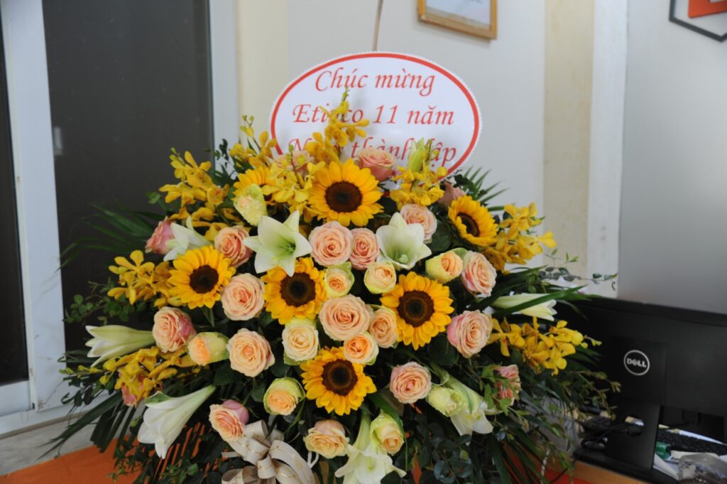 Lẵng hoa tươi thắm thể hiện tình cảm của đối tác, khách hàng