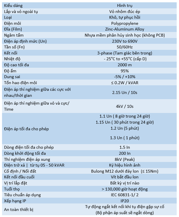 Tụ khô, kích thước nhỏ gọn, không chứa PBCs an toàn cho môi trường